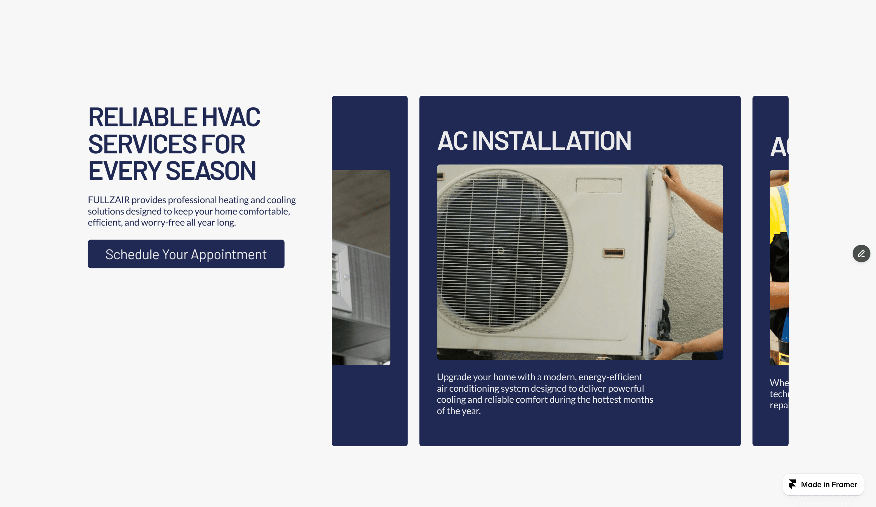 Fullzair is a modern and professional Framer microsite created specifically for HVAC companies and heating and cooling service providers who want to build a strong online presence and attract more service bookings.