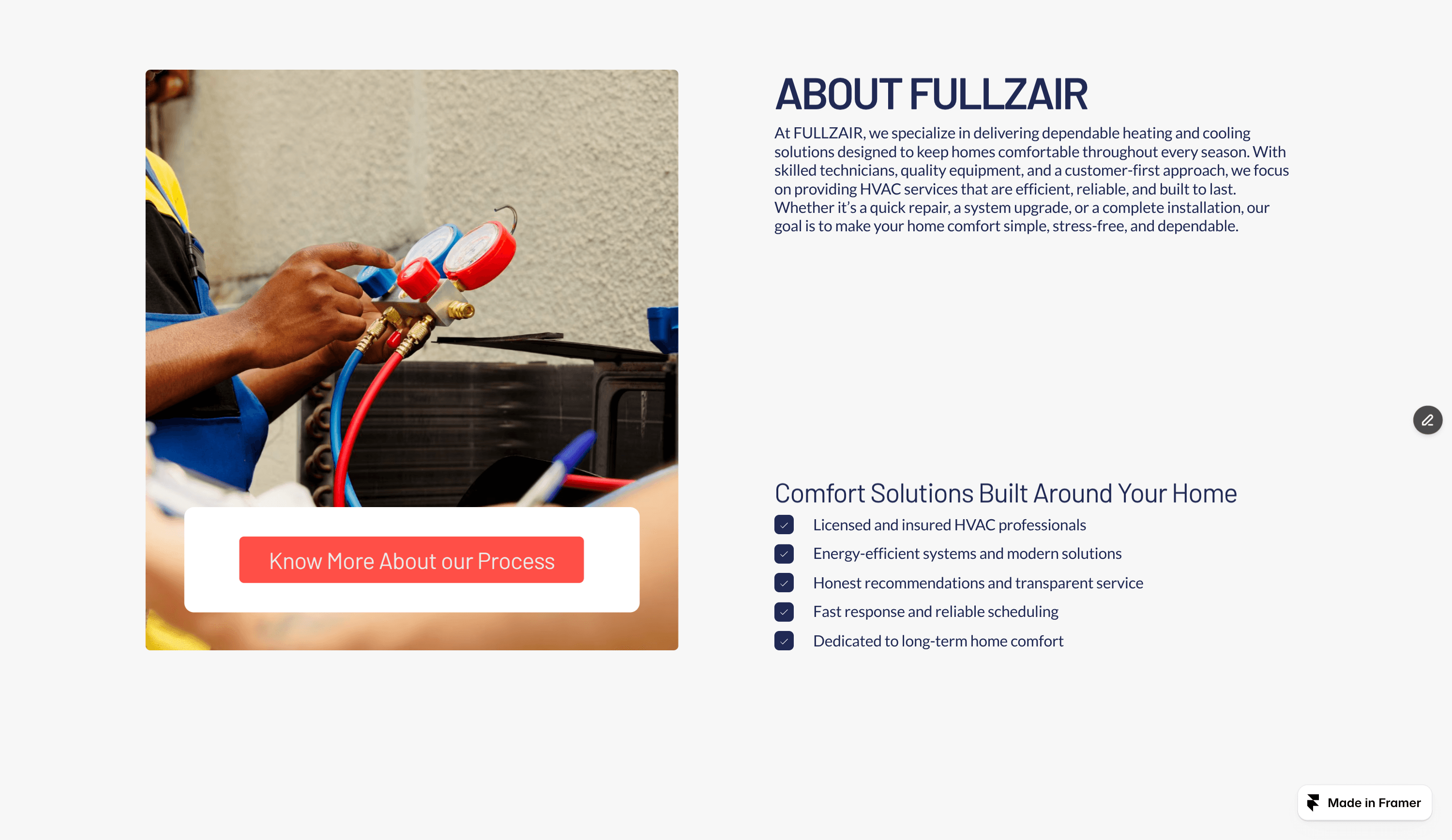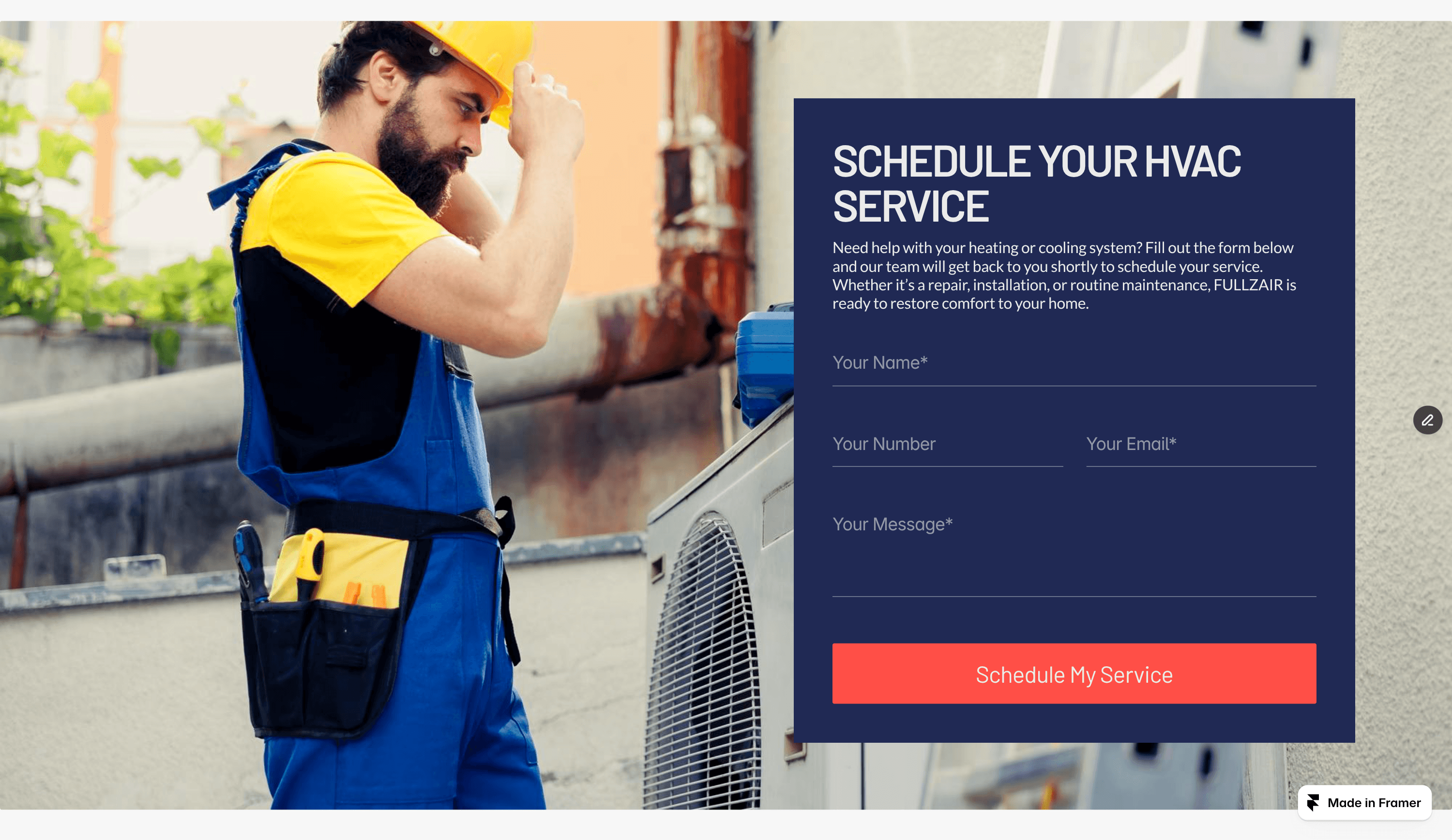 Fully customizable in Framer, Fullzair allows you to easily update branding, services, images, and contact information to match your HVAC business.